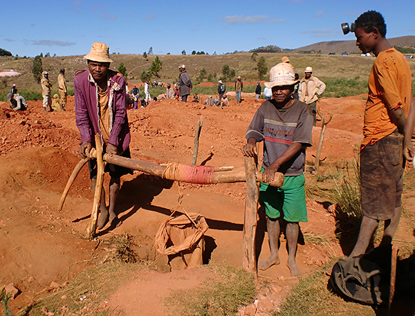 Miners in the Tamponilapa pegmatite, source of the world best hambergite. J. Rakovan photo.