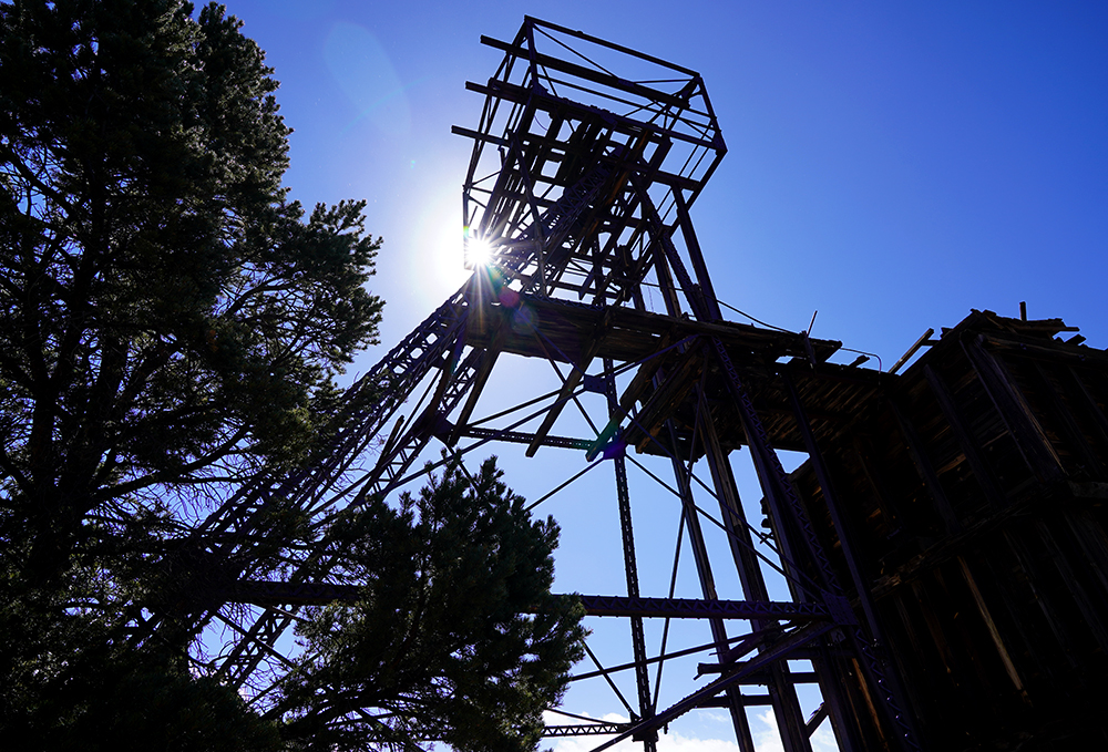 Old wooden mine mill well preserved in desertous climate of New Mexico.