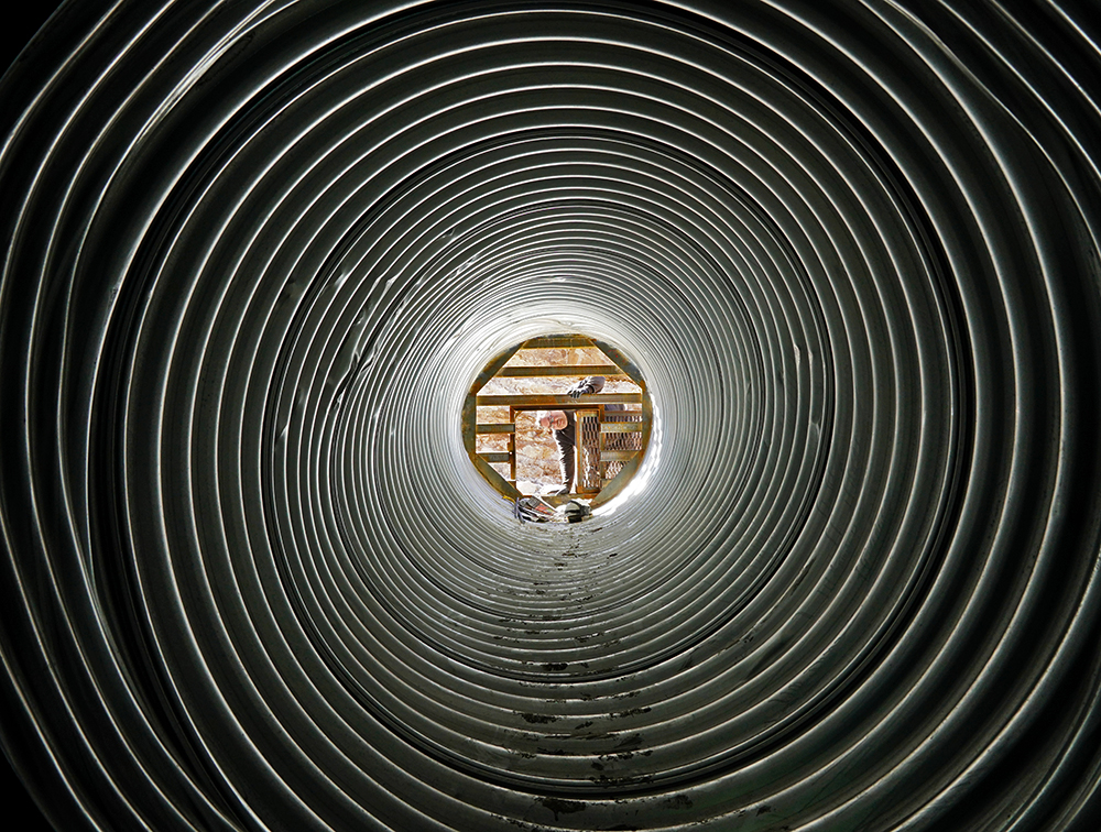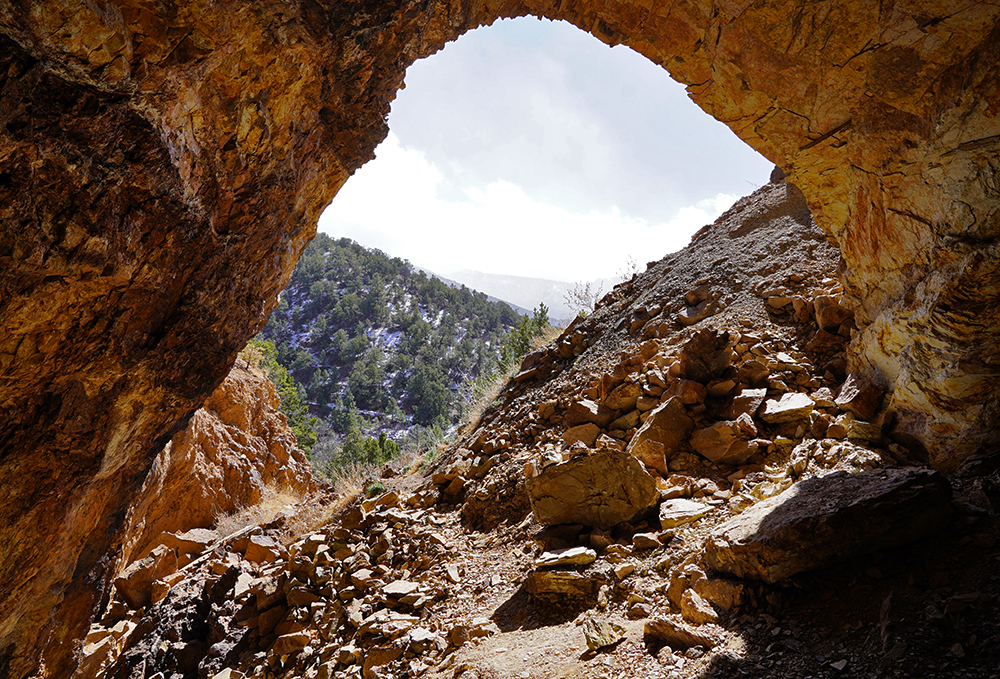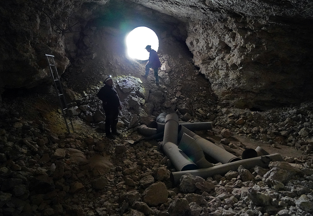 Next we visited other adits which were recently secured by installation of "tube-type" portals. At the portal to one of the adits. Quite unusual entrance to the mine. Looking inside ... Quite unusual entrance to the mine. Walking inside ...