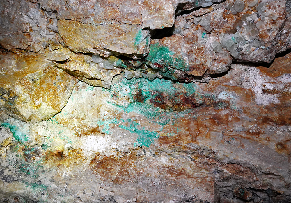 Sunshine adit no. 1 – source of some of the world best linarites and many other great specimens! This adit is also "base camp" for all collecting activity, quite cozy as for mine tunnel. Finally we go collecting! Strongly replaced limestons are very vuggy and porous. Countless number of cavities are source of great fluorites, linarites, galena etc. Mike Sanders, one of the mine co-owners, during our visit in Sunshine no 1 adit. Classic Blanchard vug with quartz, colorless fluorite and galena. Fluorite in quartz vug, with green (?)brochantite coating. Large cavity, around 1.5 m long, with good size crystals of fluorite and galena coated by sparkly quartz film. Sunshine no 1 adit.