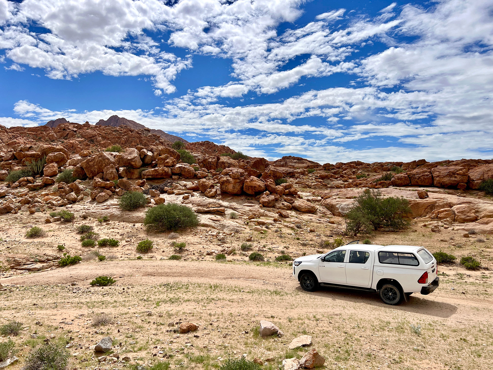Driving through granites outcrops at the Kleine Spitzkoppe. Spirifer Minerals photo.