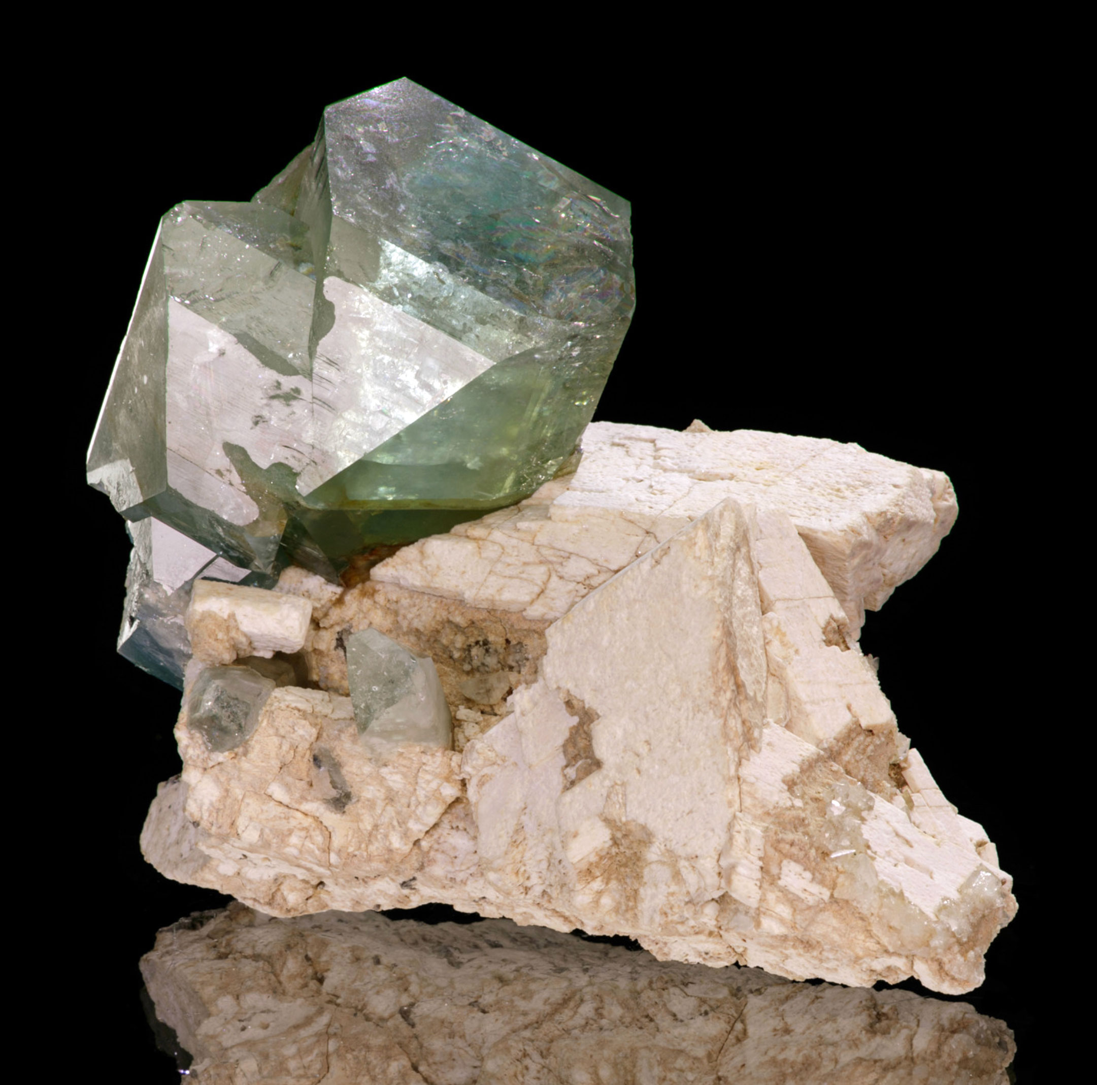 A classic Kleine Spitzkoppe specimen of topaz on feldspar matrix. Size 12 cm. Ex Gene Meieran collection. The Arkenstone specimen and photo.
