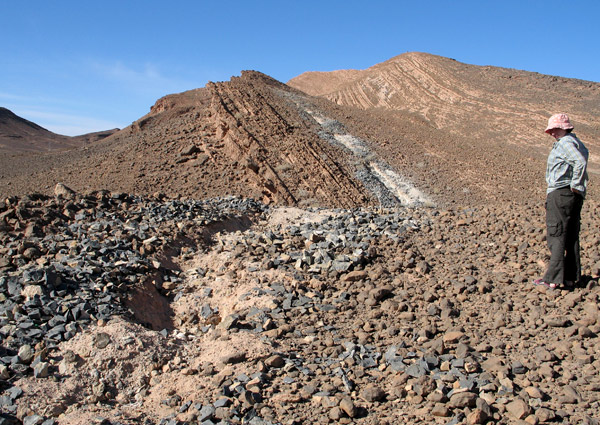 Outcrops of Devonian limestons with numerous trilobites in Alnif area. Fot. K. Dembicz.