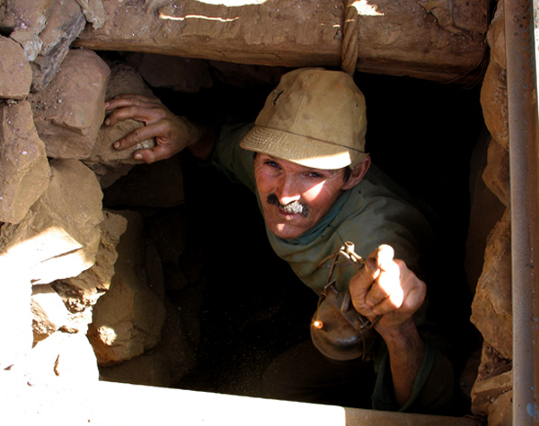 Miner in adit to mine near Taouz. Fot. K. Dembicz.