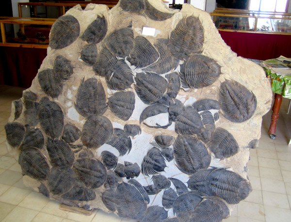 Big plate with Ordovician age trilobites in local museum near Erfoud. Fot. K. Dembicz.