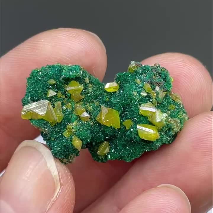 Wulfenite and dioptase from Sanda (Rep. of Congo), size: 3.2 cm, price: $120