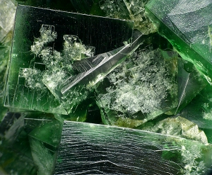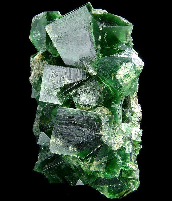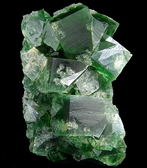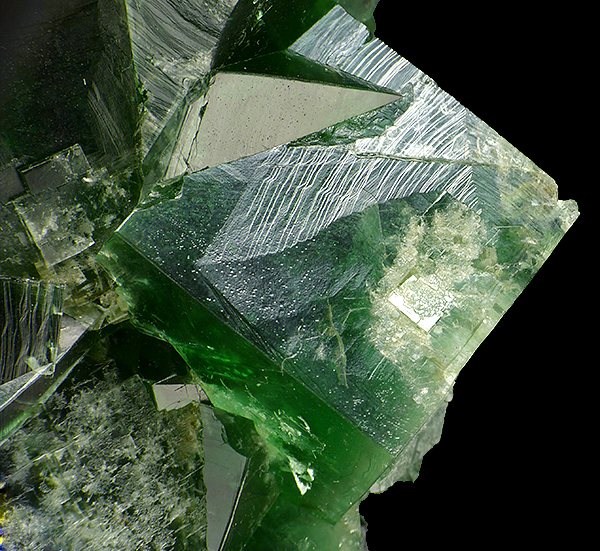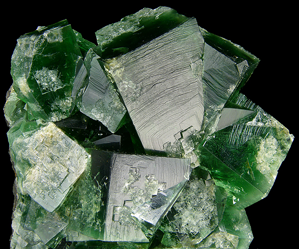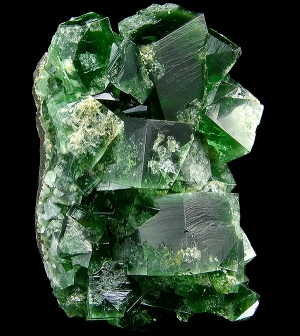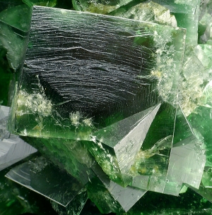 Well formed, big, lustrous, cubic and gemmy fluorite twins from world famous locality - Rogerly Mine. Lustrous fluorite cubes are well coloured - dark emerald green in colour with a strong blue daylight fluorescence, and an even strong fluorescence under long wave UV light. This amazing fluorite crystals change colour in different lights - in natural light they are blue, in artificial light they are green. Great color. Self collected in Penny Pocket in 2012.