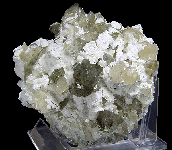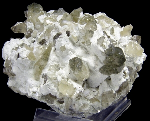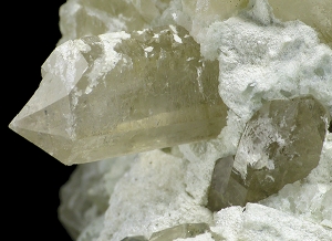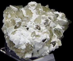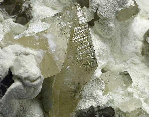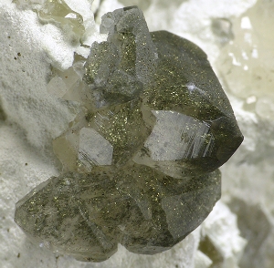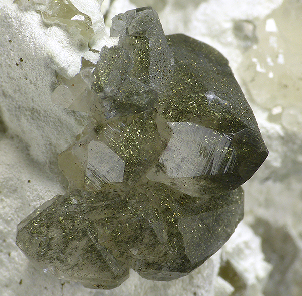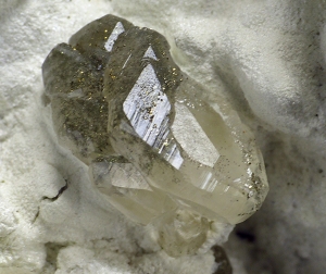Very unusual combo of quartz and calcite with chalcopyrite inclusions covered by talc, from Ait Ahmane mine in Morocco.