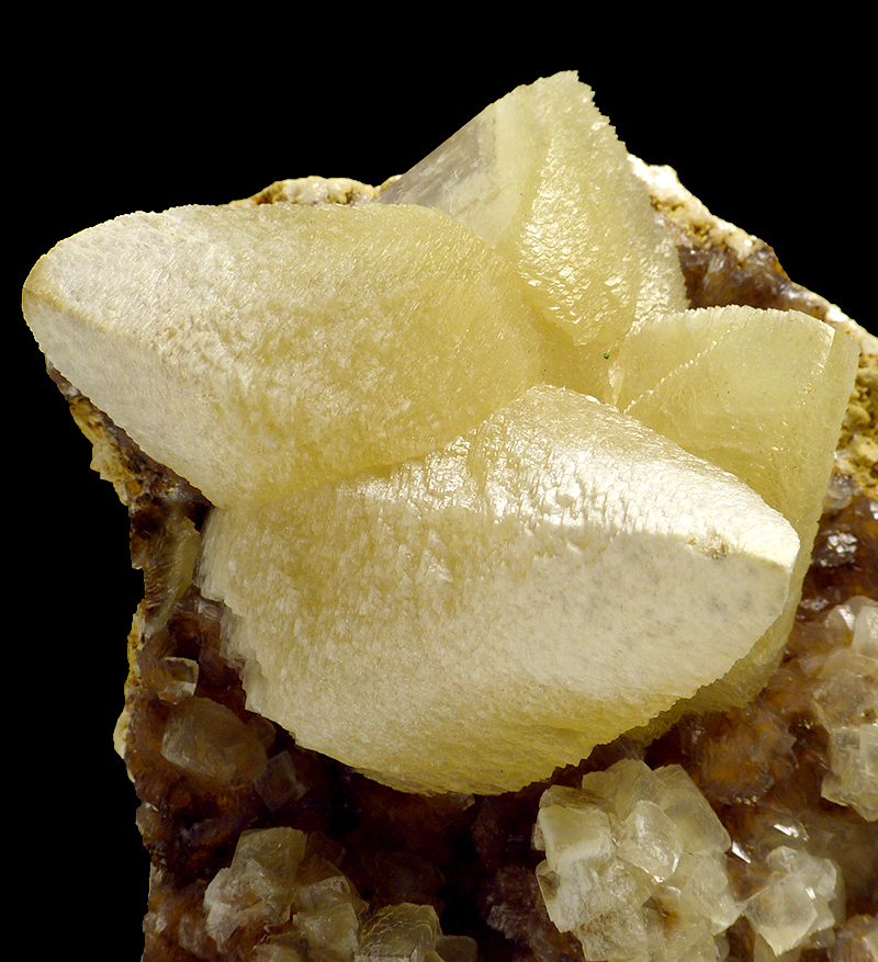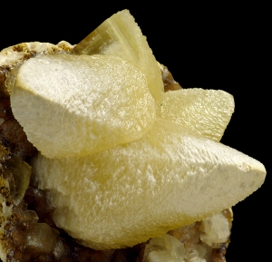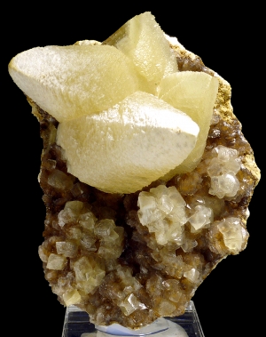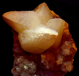 Interesting specimen of calcite crystals in white-ecru color on darker matrix. From unusual location – Siewierz in Poland.