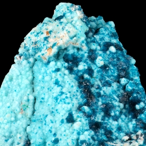 Specimen of dark blue veszelyite crystals on lighter blue hemimorphite. Great colors and luster.