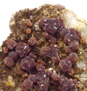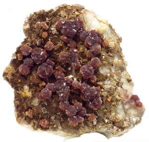 Specimen of roselite-beta crystals in red/brownish color on dolomite matrix.