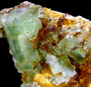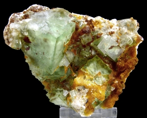Aesthetic specimen of green, gemmy and lustrous fluorite crystals on quartz matrix. Fluorescent under UV light.