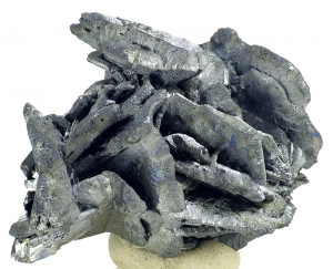 Cluster of unusual platy chalcocite crystals with great luster. Specimen from long forgotten Congolese locality - M`Passa mine. Great "fish" shape.