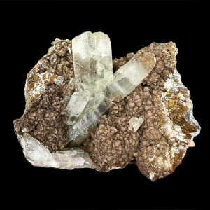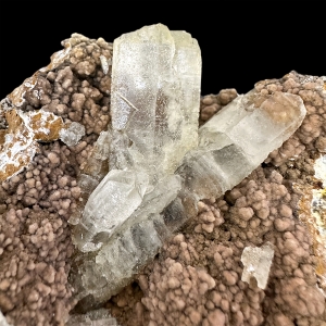 Twinned aragonite crystals on brown matrix. Nice contrast.