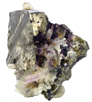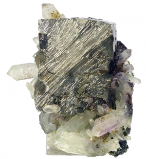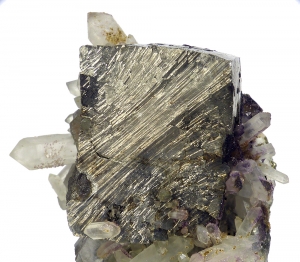 Big, sharp and lustrous crystal of arsenopyrite combined with quartz, fluorite, pyrite and sphalerite. Crystal size is 3.0 x 2.3 cm.