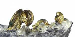 Interesting specimen of lustrous copper crystals on matrix. Nice "wave" shape. Good luster. The biggest crystal size is: 0.8 x 0.6 cm.