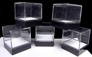Set of 5 pc high quality boxes perfect for thumbnail and toenail specimens. Tranparent cover, black bottom with white background. Fits specimens up to 4 cm.