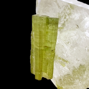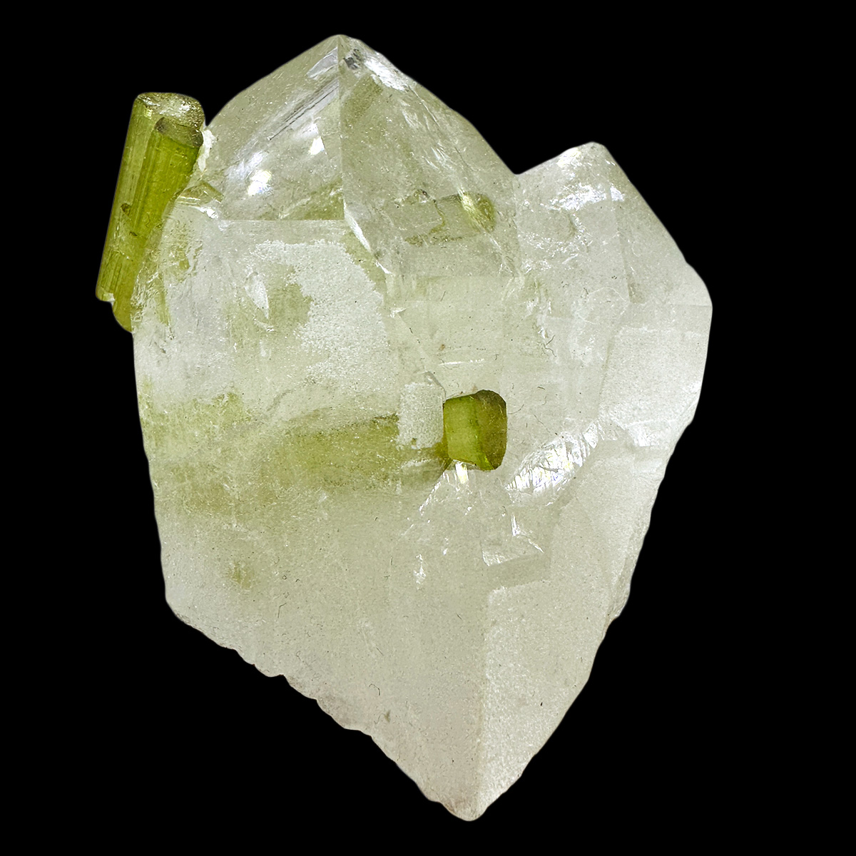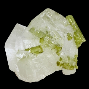 Quartz crystals with partly included gemmy and lustrous bright green tourmalines (elbaite).