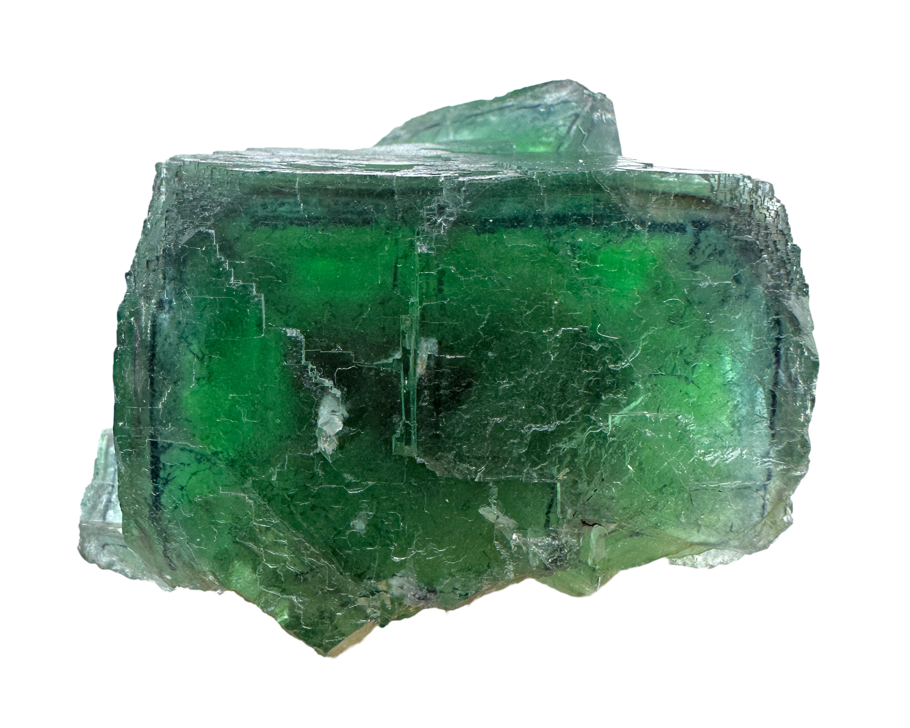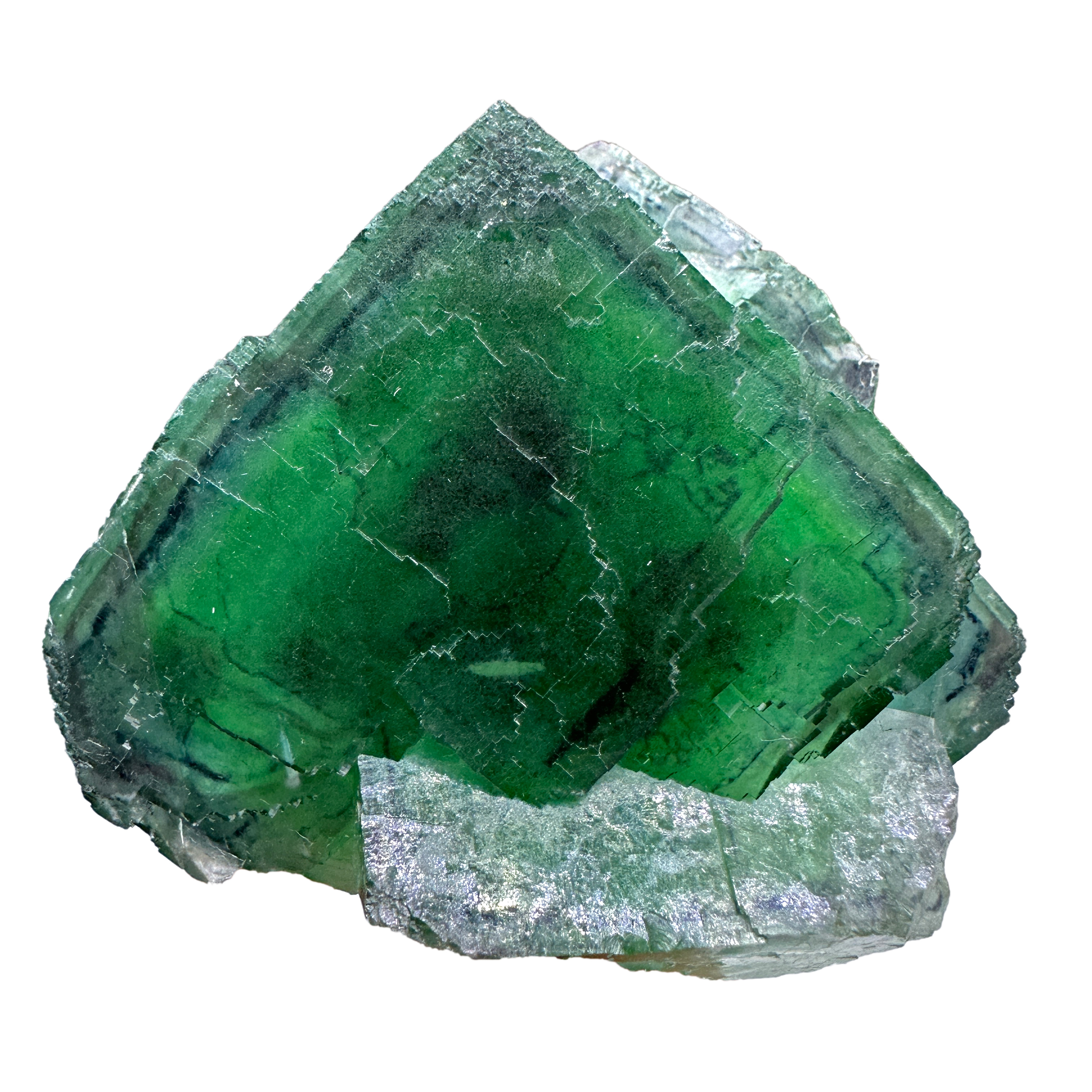Large and well formed emerald green gemmy fluorite with phantoms. One of the phantoms is blue! Great color and luster! Major for locality. Better in person.
