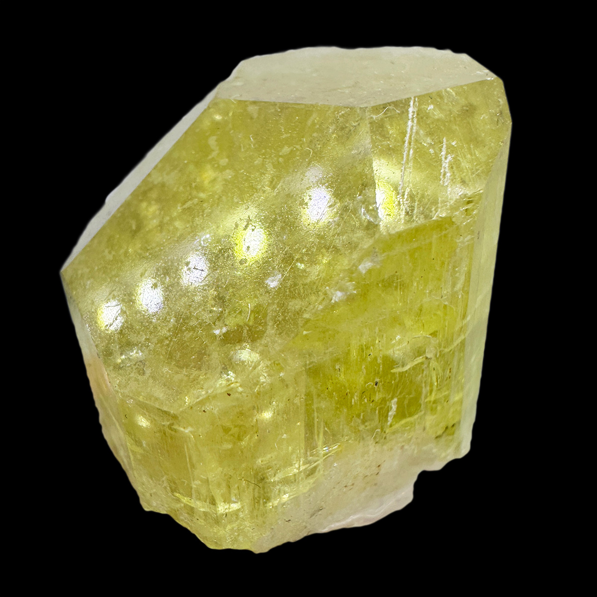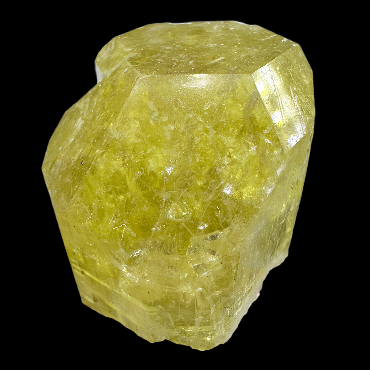 Sharp and lustrous crystal of fluorapatite in green-yellow color. Good for the location - Colorado, USA.