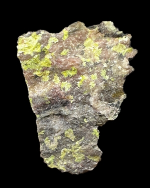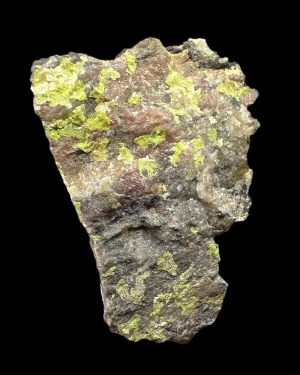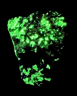 Specimen of yellow novacekite on matrix, from small find in Poland. Extremely fluorescent in UV light.
