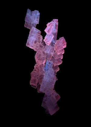 Specimen built by translucent and lustrous stacked halite cubes. Great morphology. Fluorescent under UV light.