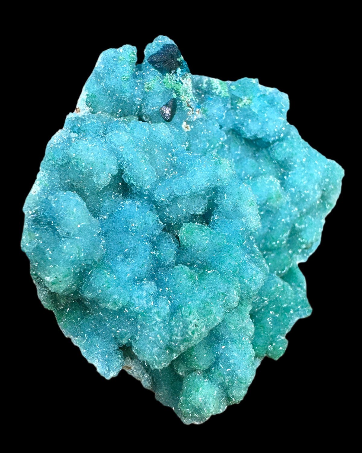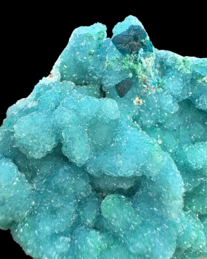 Specimen of dark blue veszelyite crystals and greenish aurichalcite on sky blue hemimorphite. From small find in N'tola area, very uncommon!