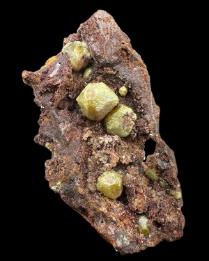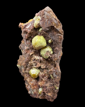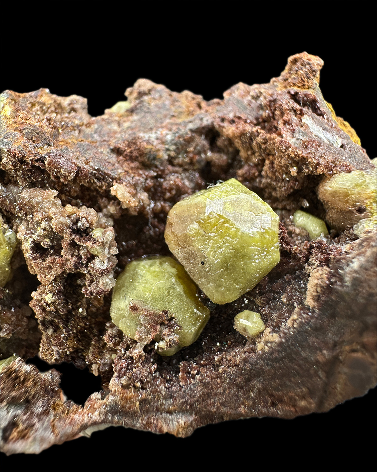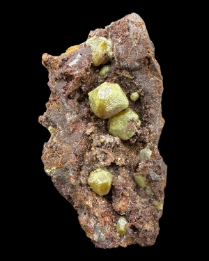 Relatively large, doubly terminated, yellow mimetite on brown matrix.