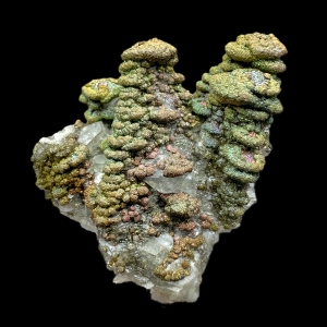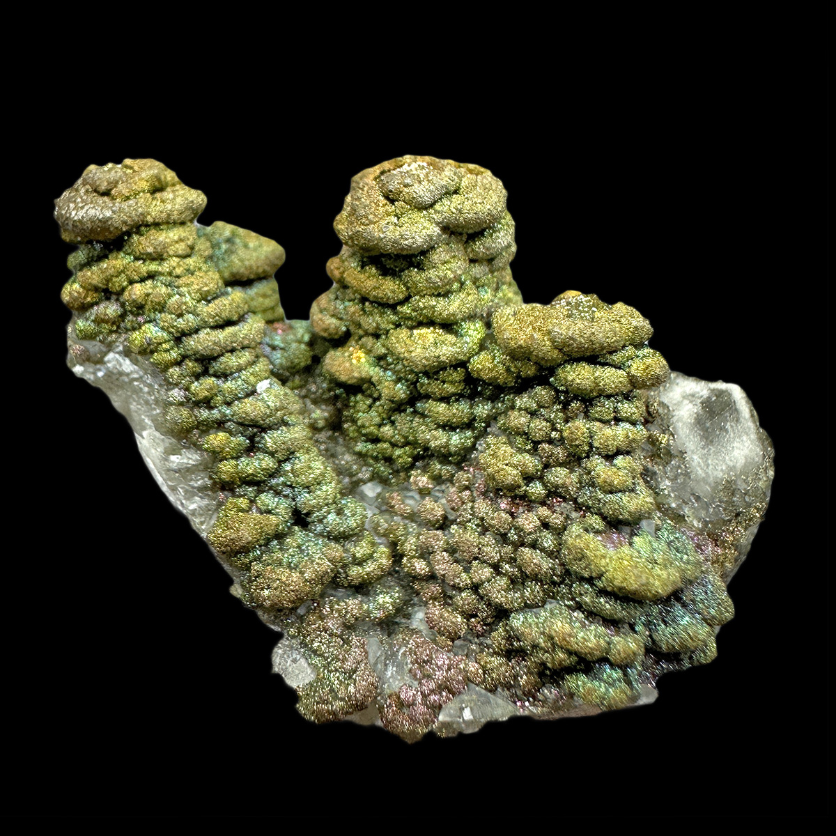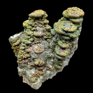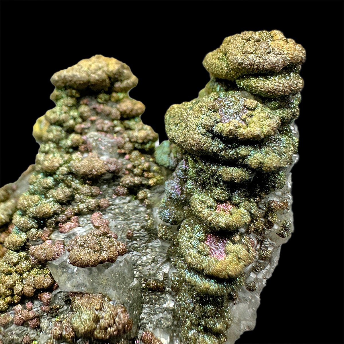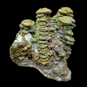 Cool formed "pagoda" calcite crystals coated by sparkly and colorful pyrite.