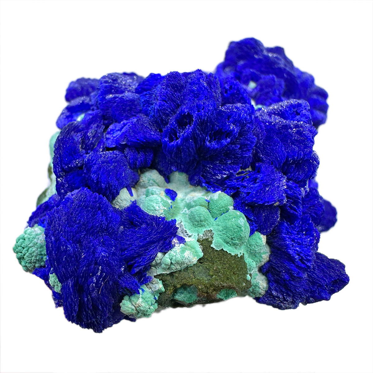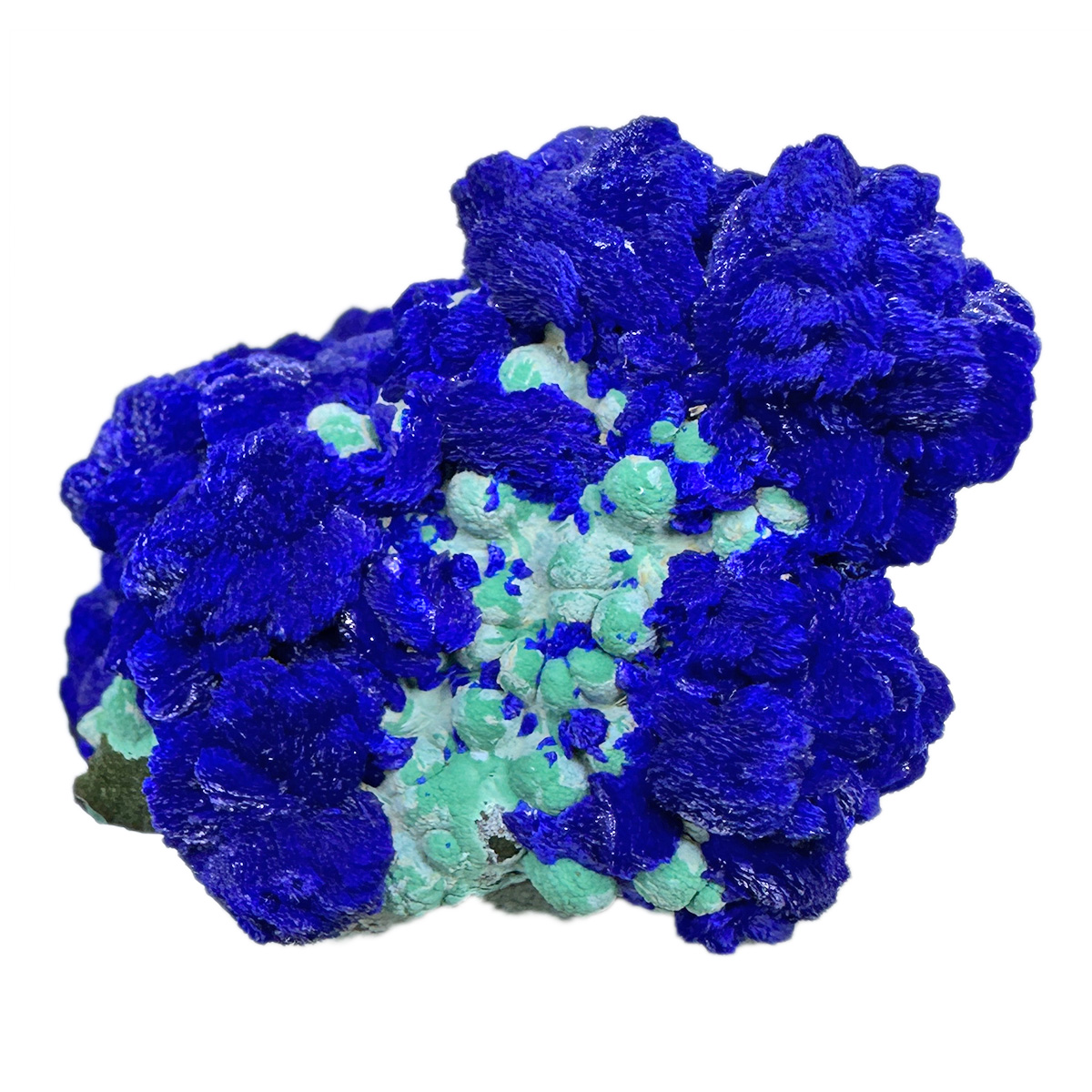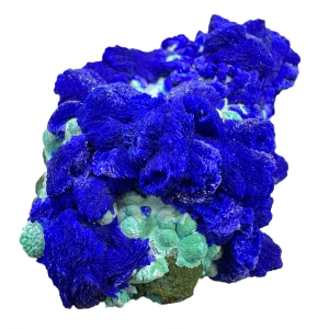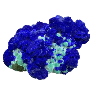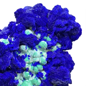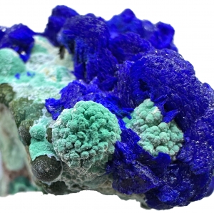 Beautiful specimen of electric blue azurite with contrastive malachite "balls", in green-celadon color. Top colors! Classic location! Ex. T. L. Potucek collection.