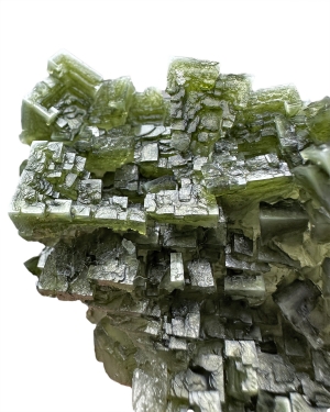 Specimen of unusual green skeletal halite crystals. Color is caused by the presence of rare tolbachite as well as inclusions of the bitumens, covellite and sulphur. Great color. Read more about similar find in a special article HERE.