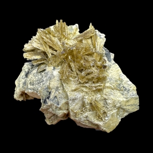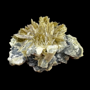 Clinozoisite sprays on feldspar matrix – good specimen for the locality. From classic pegmatites in Strzegom/Streigau area in Poland. Ex. Thomas Körber collection.
