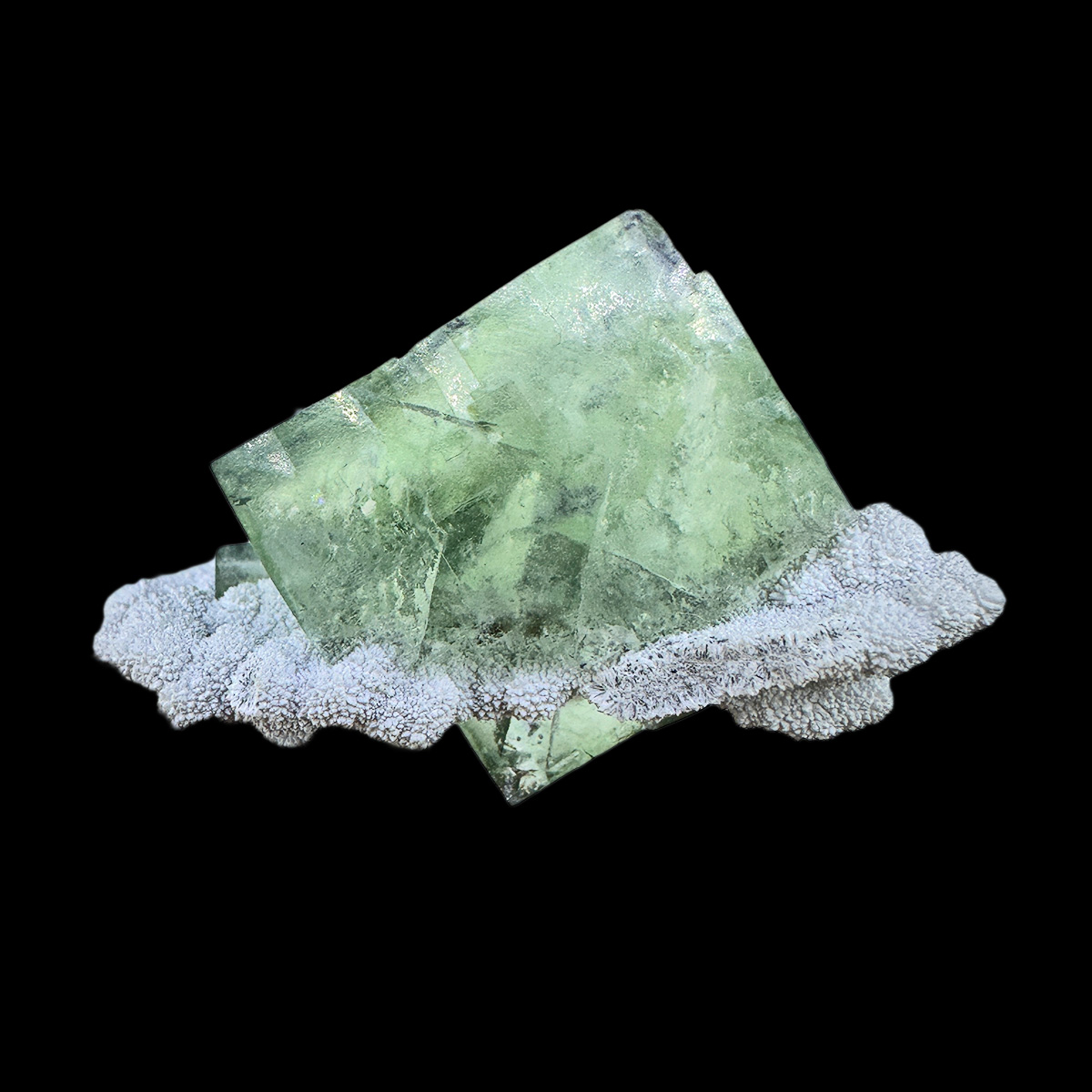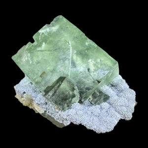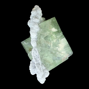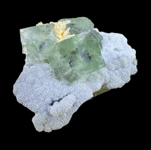Two side specimen of fluorite crystals on white quartz matrix. Good green color and luster. Fluorescent under UV light.