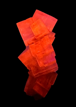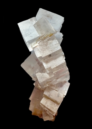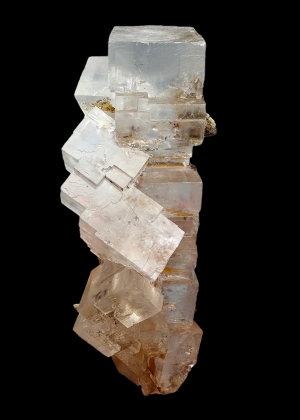 Specimen built by sharp and lustrous, stacked halite cubes. Great morphology. Fluorescent under UV light. From long ago closed mine – read more about this location our article: HERE.