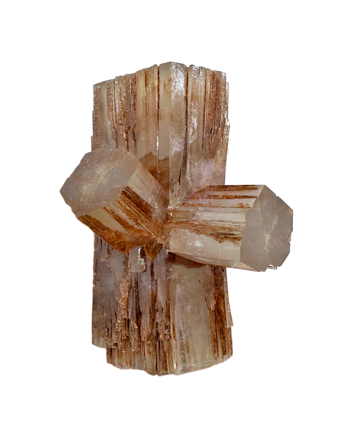 Cluster of sharp and lustrous twinned aragonite crystals. Good luster.