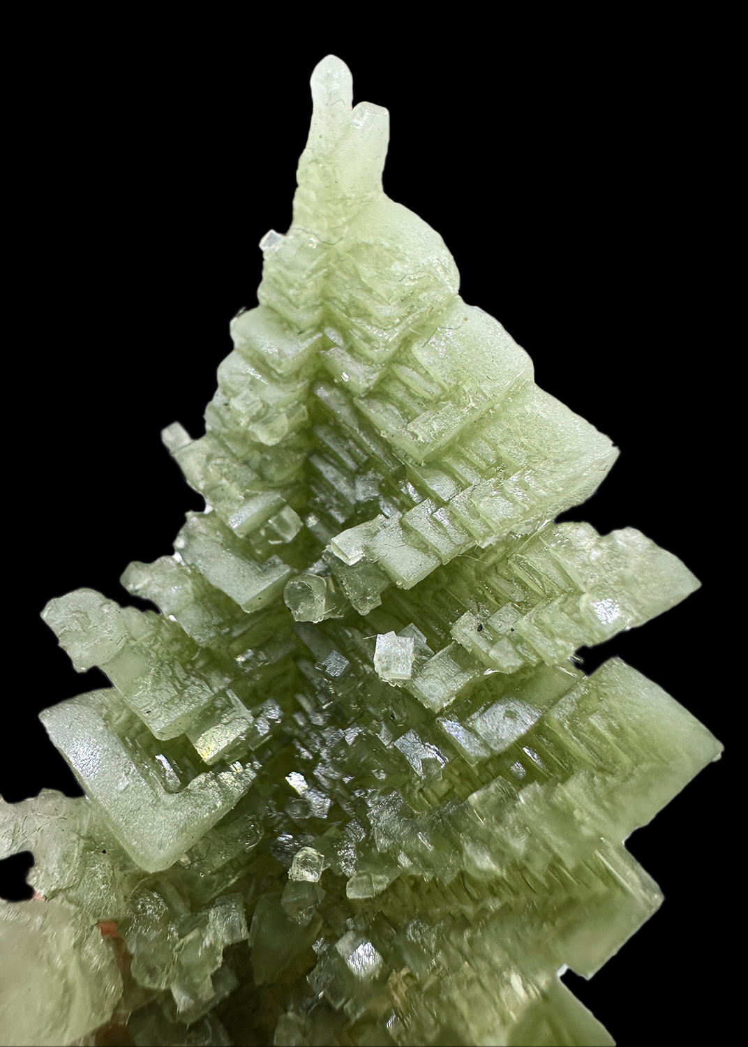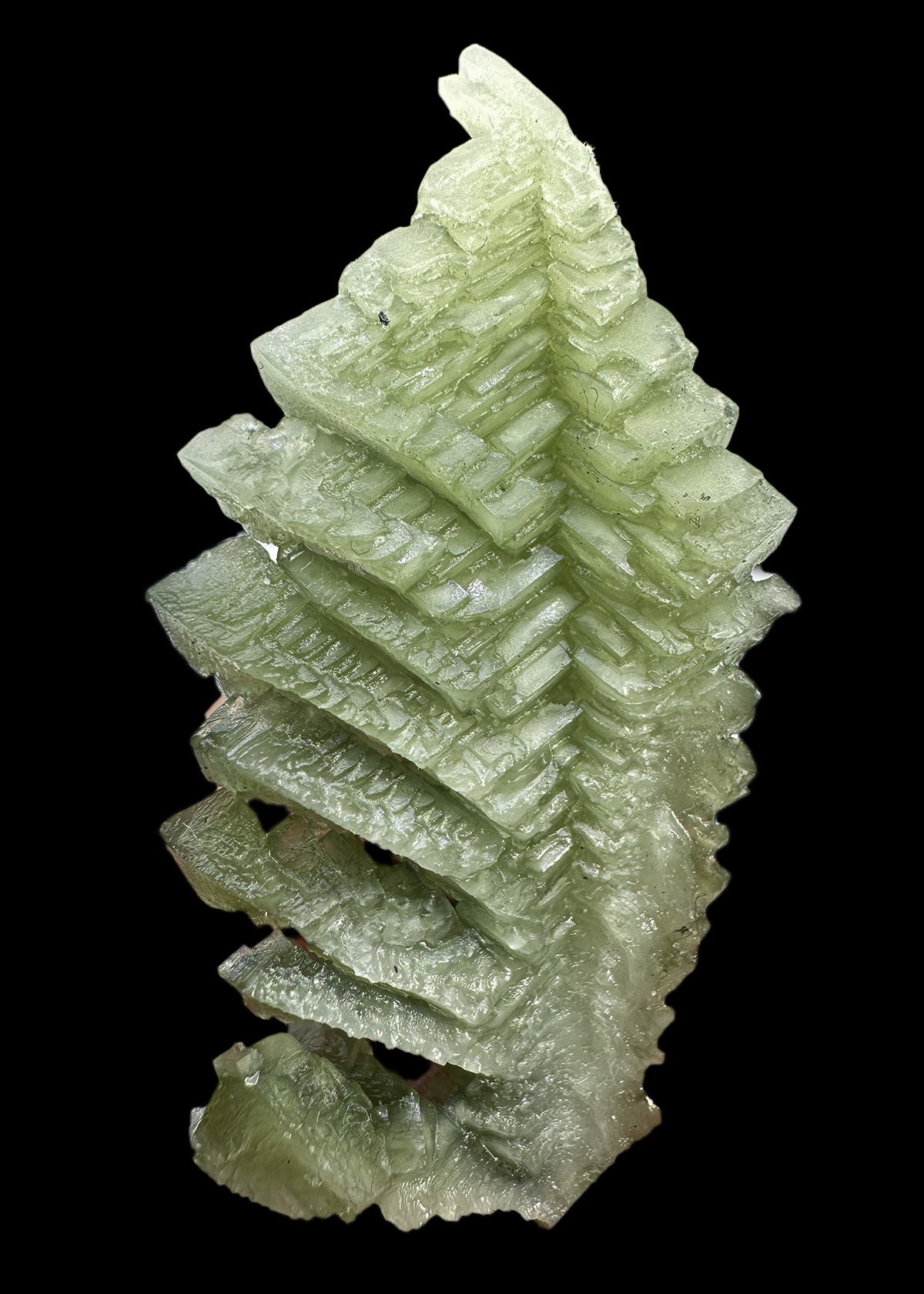 Specimen of sculptural green skeletal halite crystals. Color is caused by the presence of rare tolbachite as well as inclusions of the bitumens, covellite and sulphur. Great color. Read more about similar find in a special article HERE.