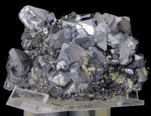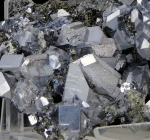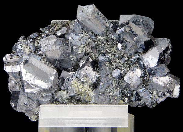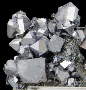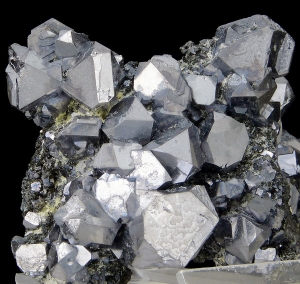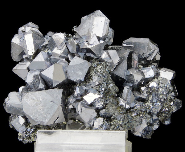Nice specimen of extremely lustrous, sharp, well formed galena cuboctahedrons scattered on matrix. Crystal size up to 2.1 cm. Some chips.