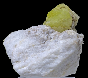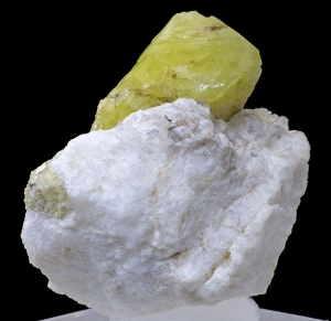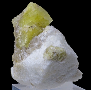 Lustrous, sharp rhodizite crystal on matrix. Good color. Size of the crystals: ~1.5 cm. Specimen mounted on acrylic base.